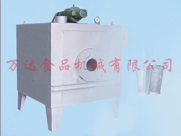 該機是以天然氣、液化氣或煤做燃料,以熱空氣為干燥介質,將熱能作用在被烘烤物體上,在烘烤過程中被烘烤物體由外桶經導流片流入內桶,然后再流入外桶,[被烘烤物不和煙火接觸],形成不間斷的循環,使之受熱均勻,有效的保證了烘烤質量。該爐主要用于烘烤鹽漬、咸脆、五香、花生米、板栗、腰果、榛子、白果等粒狀物料。通過該爐烘烤出的制品口感好,干凈衛生,均能達到出口標準。經過多家花生制品廠使用證明,該爐具有結構合理、高效節能、使用方便等優點,產品遠銷美國、日本、加拿大等國家和地區。